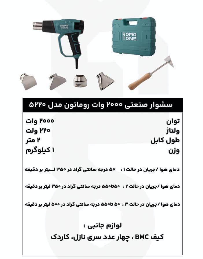 سشوار صنعتی 2000 وات روماتون کد 5230