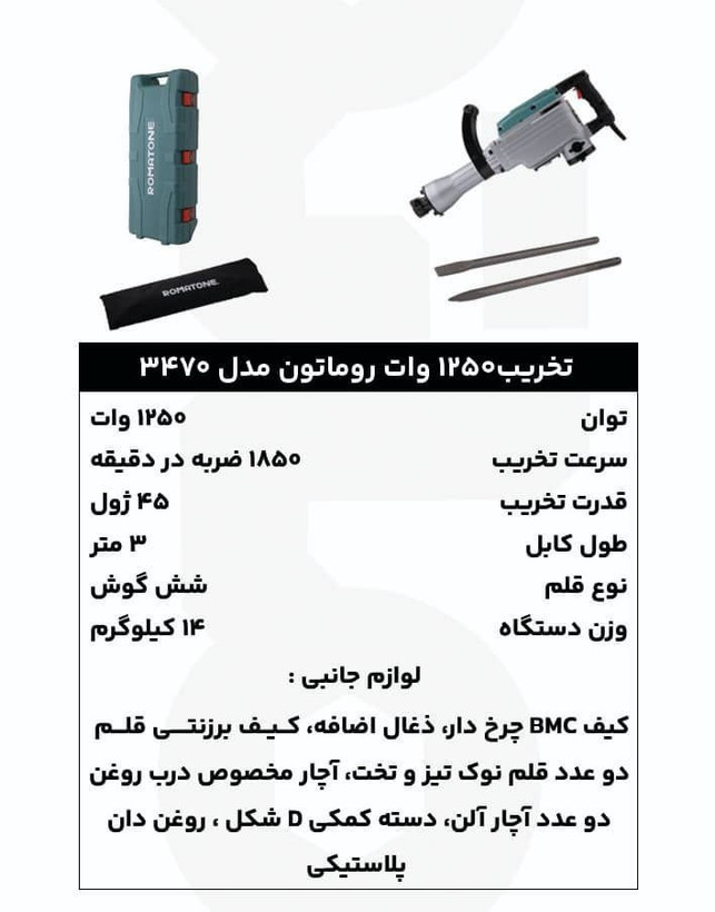 چکش تخریب 14 کیلویی روغنی 1250 وات روماتون کد 3470