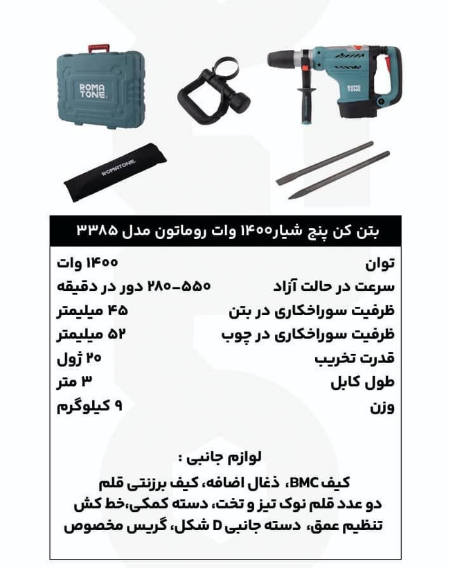 دریل بتن کن پنج شیار 1400 وات 45 میلیمتر روماتون کد 3385
