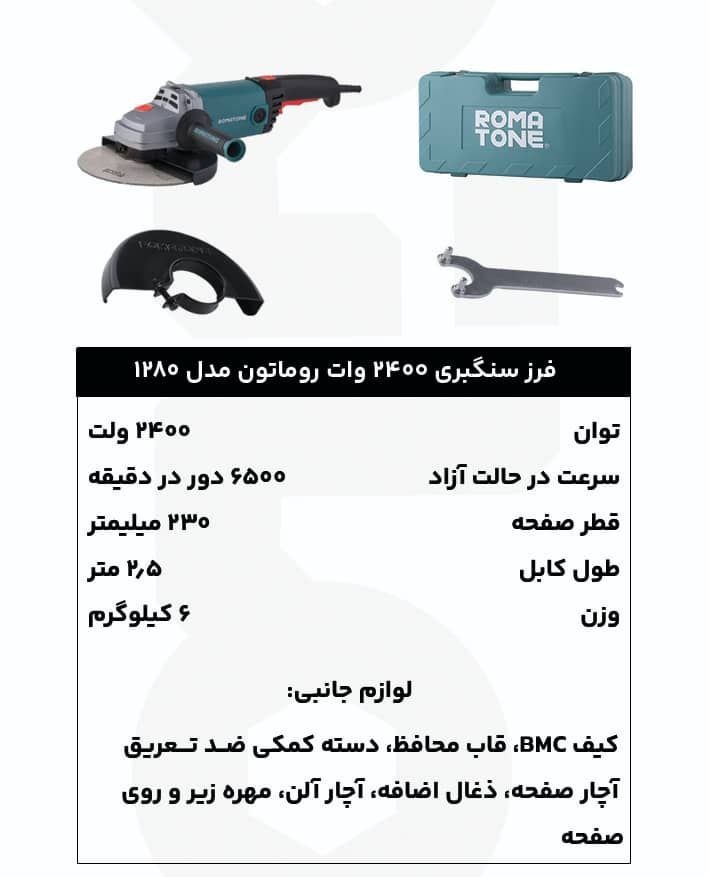 فرز سنگبری 2400 وات 230 میلیمتر روماتون کد 1280